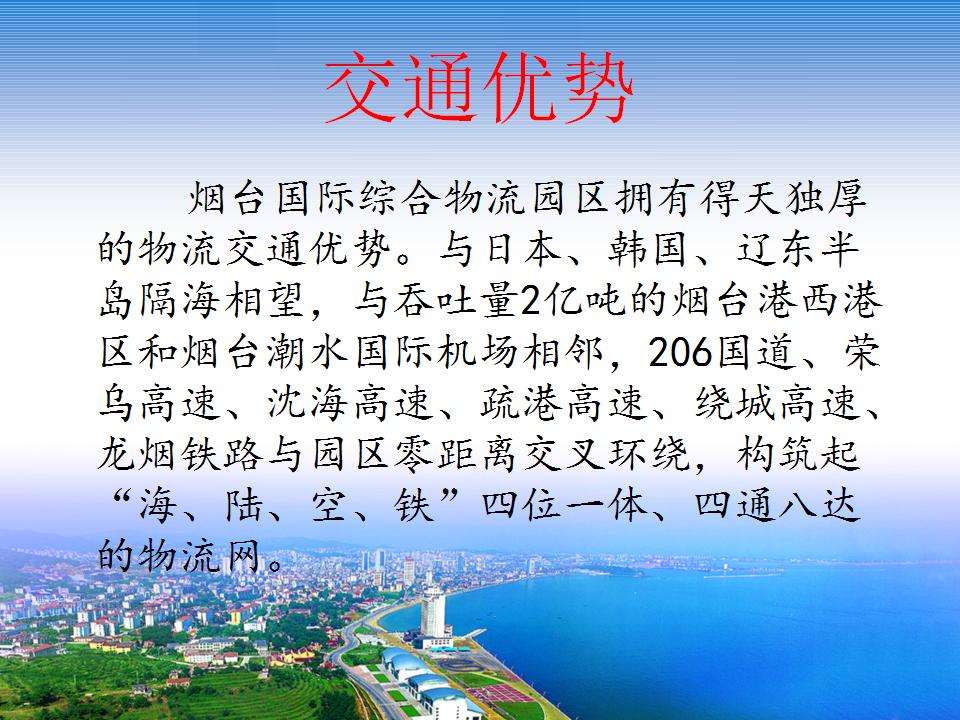 (煙臺(tái))國(guó)際綜合物流園區(qū)招商手冊(cè),可供產(chǎn)業(yè)園招商手冊(cè)參考。 01園區(qū)概況 02交通優(yōu)勢(shì) 03發(fā)展依托 04物流業(yè)發(fā)展現(xiàn)狀 05招商引資