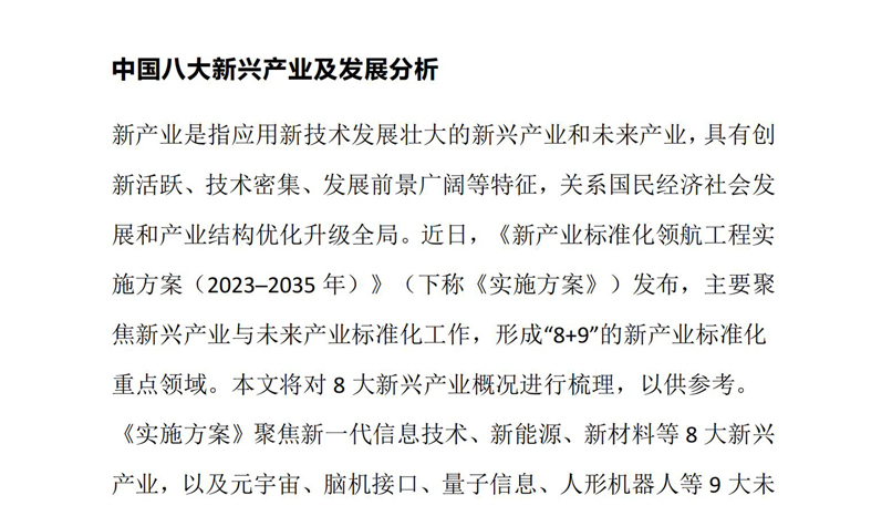 中國(guó)八大新興產(chǎn)業(yè)及發(fā)展分析: 01 新一代信息技術(shù)產(chǎn)業(yè) 02 新能源產(chǎn)業(yè) 03 新材料產(chǎn)業(yè) 04 高端裝備產(chǎn)業(yè) 05 新能源汽車產(chǎn)業(yè) 06 綠色環(huán)保產(chǎn)業(yè) 07 民用航空產(chǎn)業(yè) 08 船舶與海洋工程裝備產(chǎn)業(yè)