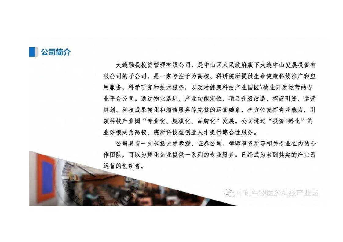 廣東省中山市生物醫(yī)藥科技產(chǎn)業(yè)園招商手冊: 01公司簡介; 02產(chǎn)業(yè)優(yōu)勢; 03項目背景; 04園區(qū)優(yōu)勢; 05發(fā)展定位特色; 06發(fā)展規(guī)劃; 07招商方向