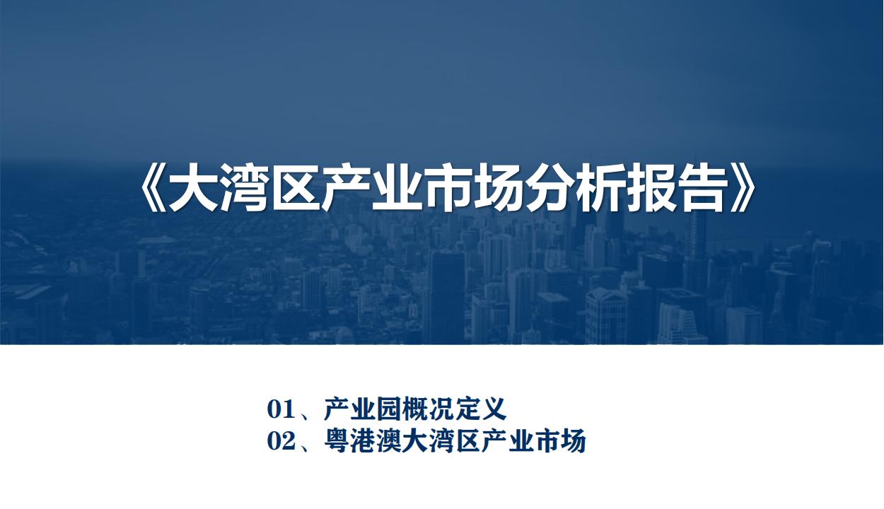 2021年版大灣區(qū)產(chǎn)業(yè)市場分析及研究報(bào)告: 01、產(chǎn)業(yè)園概況定義 02、粵港澳大灣區(qū)產(chǎn)業(yè)市場