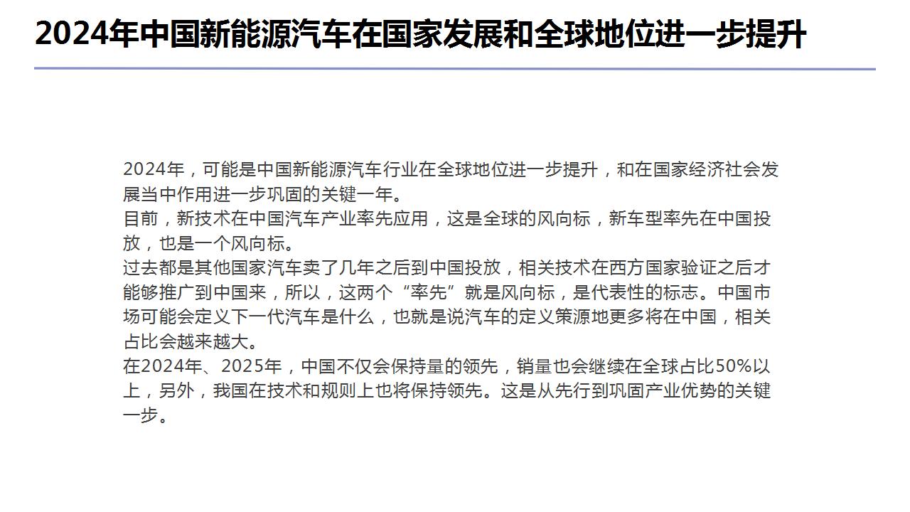 一、2024年中國(guó)新能源汽車(chē)在國(guó)家發(fā)展和全球地位進(jìn)一步提升;