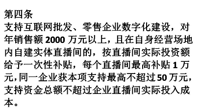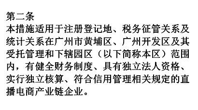 黃埔區(qū)扶持直播電商行業(yè)發(fā)展措施:本措施與本區(qū)其它扶持政策中存在同類扶持項目的,符合條件的企業(yè)當(dāng)年可選擇申請本措施或其它扶持政策予以扶持,但只可享受單個政策的扶持。