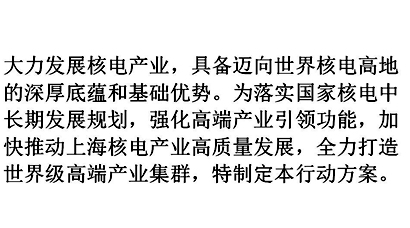 2024-2027年上海核電產(chǎn)業(yè)高質(zhì)量發(fā)展行動(dòng)方案:到2027年,上海核電產(chǎn)業(yè)規(guī)模達(dá)600億元,核電產(chǎn)業(yè)基礎(chǔ)高級化和產(chǎn)業(yè)鏈現(xiàn)代化水平顯著提升,科技創(chuàng)新有力支撐產(chǎn)業(yè)高質(zhì)量發(fā)展,基本建成世界級核電產(chǎn)業(yè)中心,打響“上海核電”品牌。