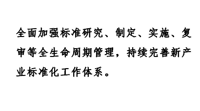 實(shí)施新產(chǎn)業(yè)標(biāo)準(zhǔn) 化領(lǐng)航工程,對于推動(dòng)新產(chǎn)業(yè)高質(zhì)量發(fā)展、加快建設(shè)現(xiàn)代化 產(chǎn)業(yè)體系具有深遠(yuǎn)意義。