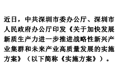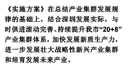 深圳“20+8”產(chǎn)業(yè)集群 2.0版本:加快發(fā)展新質(zhì)生產(chǎn)力,進(jìn)一步發(fā)展壯大戰(zhàn)略性新興產(chǎn)業(yè)集群和培育發(fā)展未來(lái)產(chǎn)業(yè)。
