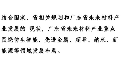 廣東省培育未來材料產(chǎn)業(yè)集群行動(dòng)計(jì)劃:到 2035 年,建立起自主創(chuàng)新能力強(qiáng)、規(guī)?;潭雀摺a(chǎn)業(yè)配套齊全、 國際領(lǐng)先的未來材料產(chǎn)業(yè)體系,成為支撐引領(lǐng)廣東省經(jīng)濟(jì)社會(huì)發(fā)展的新質(zhì)生產(chǎn)力。