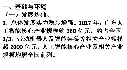 廣東省新一代人工智能發(fā)展規(guī)劃:到2025年,廣東人工智能基礎(chǔ)理論取得重大突破,部分技術(shù)與應(yīng)用研究達(dá)到世界先進(jìn)水平,開放創(chuàng)新平臺成為引領(lǐng)人工智能發(fā)展的標(biāo)桿,有力支撐廣東建設(shè)國家科技產(chǎn)業(yè)創(chuàng)新中心。