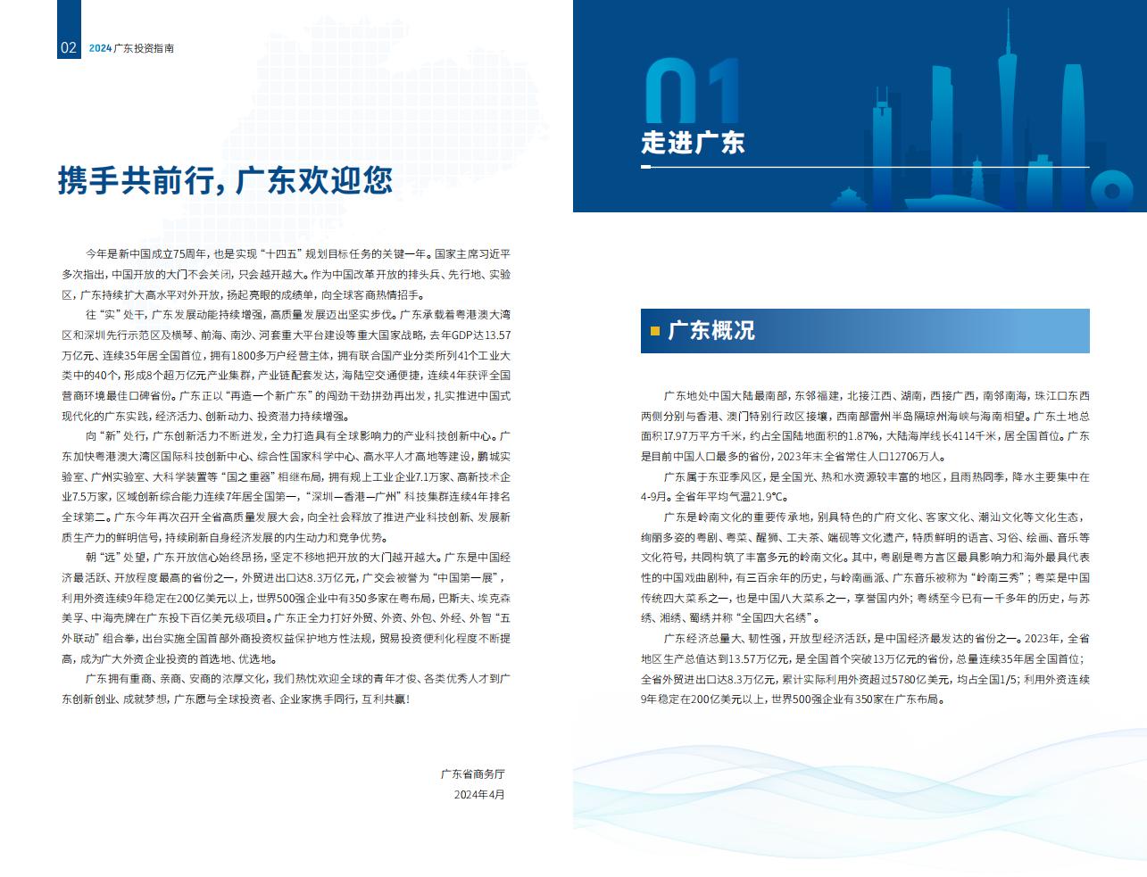 2024年廣東投資指南(來源:投資廣東):2024年1-3月,全省實(shí)際使用外資金額359.2億元,同比下降32.2%;新設(shè)外商直接投資企業(yè)5064個(gè),同比增長23.1%。廣東省一季度實(shí)現(xiàn)地區(qū)生產(chǎn)總值31510.66億元,同比增長4.4%。第一產(chǎn)業(yè)增加值1054.24億元,增長3.7%;第二產(chǎn)業(yè)增加值11735.52億元,增長6.1%;第三產(chǎn)業(yè)增加值18720.90億元,增長3.5%。工業(yè)生產(chǎn)較快增長,重點(diǎn)行業(yè)如計(jì)算機(jī)、通信和其他電子設(shè)備制造業(yè)增加值增長18.2%。服務(wù)業(yè)平穩(wěn)增長,交通運(yùn)輸、倉儲和郵政業(yè),租賃和商務(wù)服務(wù)業(yè),信息傳輸、軟件和信息技術(shù)服務(wù)業(yè)增長較快。