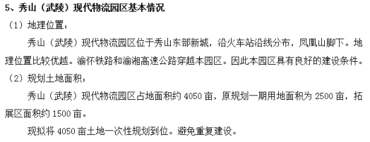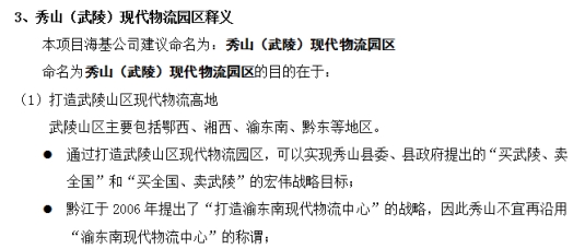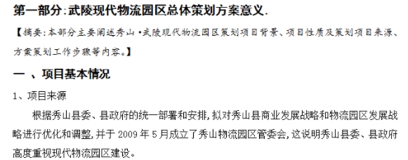重慶秀山(武陵)現(xiàn)代物流園區(qū)發(fā)展策劃方案: 第一部分:秀山(武陵)現(xiàn)代物流園區(qū)發(fā)展策劃方案意義 第二部分:秀山(武陵)現(xiàn)代物流園區(qū)發(fā)展戰(zhàn)略 第三部分:秀山(武陵)現(xiàn)代物流園區(qū)具體方案 第四部分:秀山(武陵)現(xiàn)代物流園區(qū)發(fā)展策劃實(shí)施策略