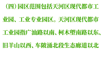 廣州市天河區(qū)加快推動(dòng)現(xiàn)代都市工業(yè)高質(zhì)量發(fā)展的若干政策措施:園區(qū)范圍包括天河區(qū)現(xiàn)代都市工業(yè)園、工業(yè)專業(yè)園區(qū)。天河區(qū)現(xiàn)代都市工業(yè)園指廣汕路以南、柯木塱南路以東、舊羊山以西、車陂涌北段生態(tài)廊道以北區(qū)域(即2112工園范圍)。工業(yè)專業(yè)園區(qū)指在天河區(qū)內(nèi)有獨(dú)立法人資格,實(shí)行獨(dú)立核算,有專業(yè)招商團(tuán)隊(duì)和成熟招商運(yùn)營(yíng)方案,總建筑面積超過(guò)2萬(wàn)平方米,園區(qū)產(chǎn)業(yè)定位符合天河區(qū)現(xiàn)代都市工業(yè)發(fā)展方向,且與天河區(qū)簽訂合作協(xié)議的現(xiàn)代都市工業(yè)產(chǎn)業(yè)園。