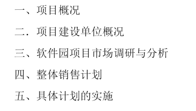天津新技術(shù)產(chǎn)業(yè)園區(qū)華苑軟件園營(yíng)銷策劃方案 一、項(xiàng)目概況 二、項(xiàng)目建設(shè)單位概況 三、軟件園項(xiàng)目市場(chǎng)調(diào)研與分析 四、整體銷售計(jì)劃 五、具體計(jì)劃的實(shí)施 六、收益分析