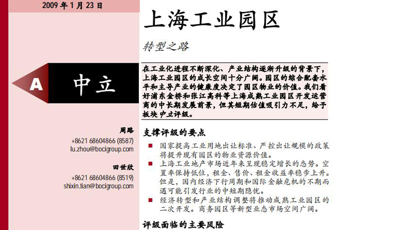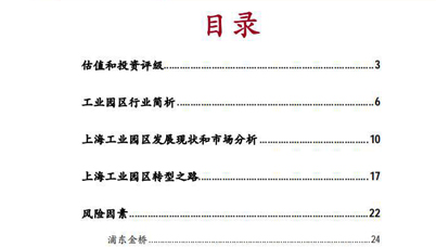 上海工業(yè)園區(qū)轉(zhuǎn)型深度研究報(bào)告: 一、估值和投資評(píng)級(jí) 二、工業(yè)園區(qū)行業(yè)簡(jiǎn)析 三、上海工業(yè)園區(qū)發(fā)展現(xiàn)狀和市場(chǎng)分析 四、上海工業(yè)園區(qū)轉(zhuǎn)型之路 1.風(fēng)險(xiǎn)因素 2.浦東金橋 3.張江高科