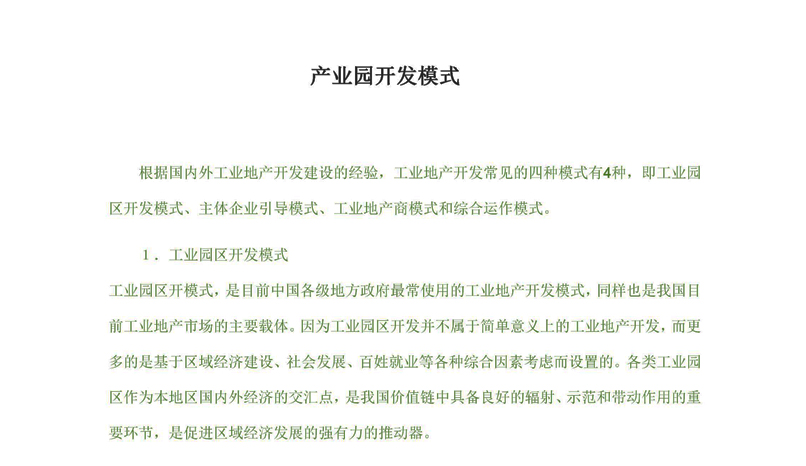 產(chǎn)業(yè)園開發(fā)模式分析研究: