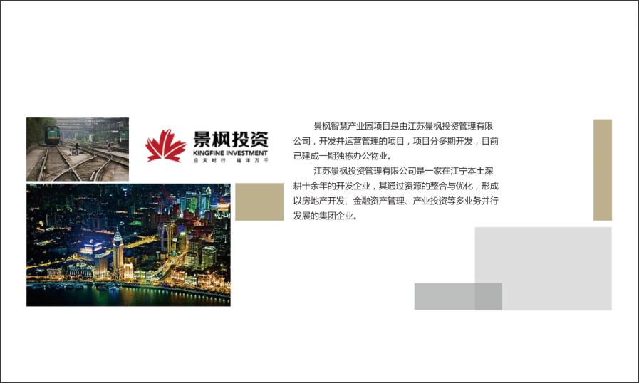智慧產(chǎn)業(yè)園招商手冊(cè)(南京景楓為例): 1、開(kāi)發(fā)企業(yè)介紹 2、項(xiàng)目位置介紹 3、項(xiàng)目規(guī)劃 4、項(xiàng)目現(xiàn)入駐企業(yè) 5、項(xiàng)目一期辦公物業(yè)面積 6、未來(lái)項(xiàng)目配套