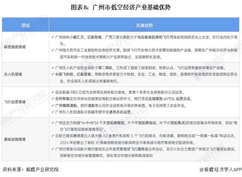 廣州低空經(jīng)濟產(chǎn)業(yè)在研發(fā)制造、無人機、飛行運營和基礎(chǔ)設(shè)施保障方面均形成一定基礎(chǔ),城市深厚的整車和零部件制造業(yè)也易于向低空飛行器生產(chǎn)鏈轉(zhuǎn)型。