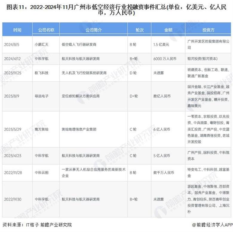 2022 年以來廣州市低空經(jīng)濟行業(yè)投融資事件匯總?cè)缦拢?/p>