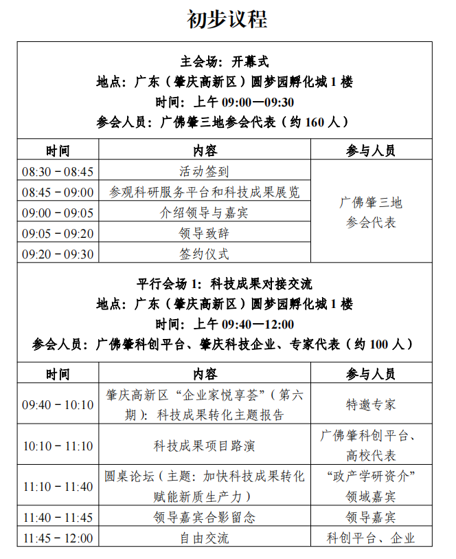 廣州市科學(xué)技術(shù)局與肇慶市科學(xué)技術(shù)局、佛山高新技術(shù)產(chǎn)業(yè)開(kāi)發(fā)區(qū)管理委員會(huì)、肇慶高新技術(shù)產(chǎn)業(yè)開(kāi)發(fā)管理委員會(huì)計(jì)劃于2024年7月3日在佛山、肇慶市舉辦“向新提質(zhì)·智贏未來(lái)”廣佛肇科技產(chǎn)業(yè)融合交流會(huì)暨科技成果轉(zhuǎn)化對(duì)接活動(dòng)。
