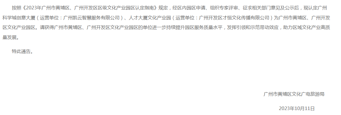 其中,廣州黃埔區(qū)-廣州大灣區(qū)數(shù)字文化產(chǎn)業(yè)園是黃埔區(qū)內(nèi)重點(diǎn)園區(qū),已經(jīng)吸引了60余家文化科技企業(yè)入駐,獲得“廣州市文化產(chǎn)業(yè)示范園區(qū)”等多項(xiàng)榮譽(yù)。在2023年,廣州市黃埔區(qū)文化廣電旅游局公布認(rèn)定廣州科學(xué)城創(chuàng)意大廈、人才大廈文化產(chǎn)業(yè)園為廣州市黃埔區(qū)、廣州開發(fā)區(qū)文化產(chǎn)業(yè)園區(qū)。