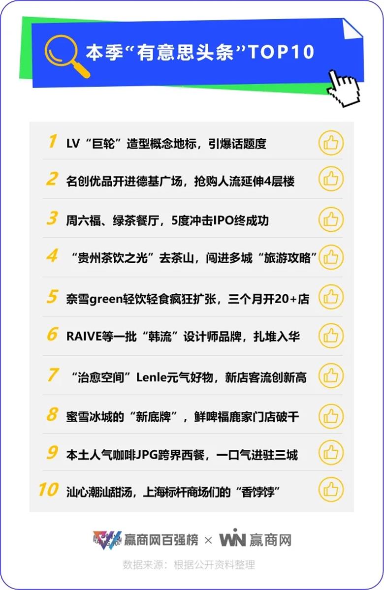 LV全球唯一“巨輪”開(kāi)進(jìn)商場(chǎng),晉升“城市現(xiàn)象級(jí)消費(fèi)地標(biāo)”;名創(chuàng)優(yōu)品全球首家MINISO SPACE,刷新中國(guó)品牌在全球零售舞臺(tái)高度;周六福香港IPO,獲超700倍認(rèn)購(gòu);Lenle元?dú)夂梦?0周年之際革新門(mén)店形象,客流創(chuàng)新高;奈雪green輕飲輕食首店,開(kāi)業(yè)3天銷售額達(dá)12萬(wàn)元……