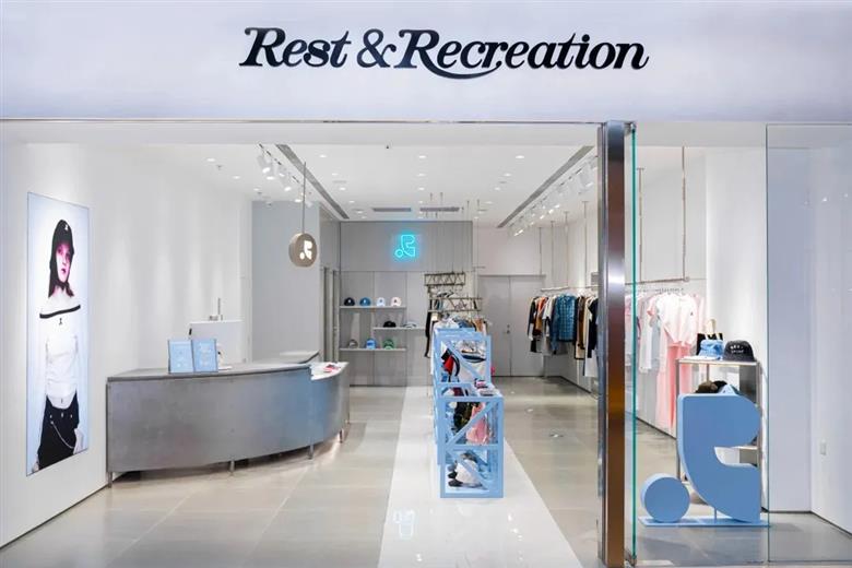 由甜辣風(fēng)過(guò)渡到簡(jiǎn)約舒適風(fēng),更具包容性?!綬est&Recreation】因簡(jiǎn)約時(shí)髦的無(wú)性別設(shè)計(jì)、輕松日常的穿搭氛圍出圈;【RAIVE】主打簡(jiǎn)約的美式復(fù)古風(fēng)格;兼具天然面料與時(shí)尚版型的【BLUEDOG】始終致力于展現(xiàn)Friendly Nature Look。門(mén)店主色調(diào)也相應(yīng)的從高飽和色塊變?yōu)闇\粉、淺藍(lán)等低飽和色系。