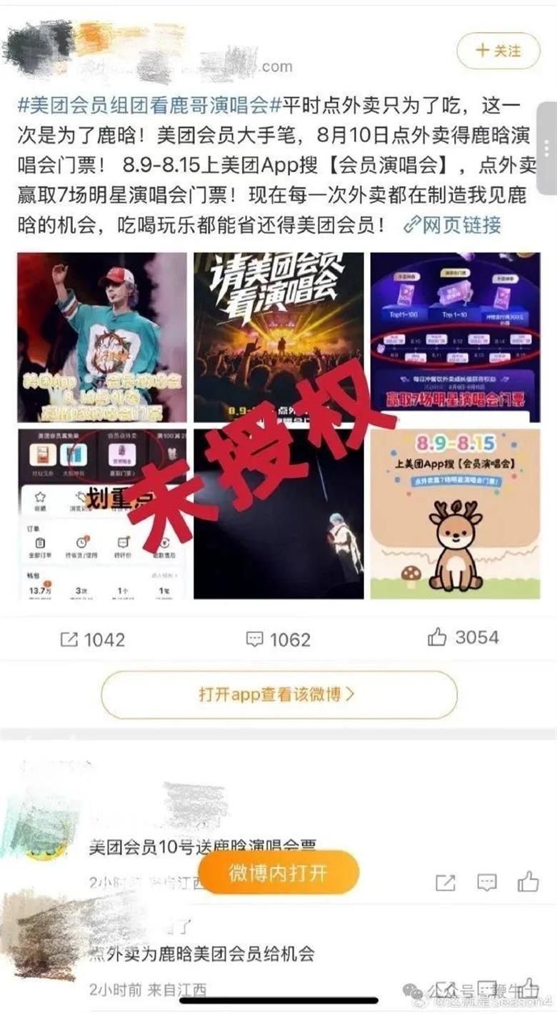 其表示:“如下某平臺活動及話題,均非我方及鹿晗先生官方授權合作,已侵犯鹿晗先生的人格權及我方對該演唱會的獨家合法權益。對此我方已完成取證,并保留依法追訴的權利。”(鞭牛士)