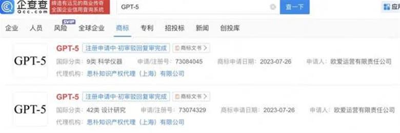 【OpenAI在中國申請GPT5商標被駁回】天眼查App顯示,歐愛公司(OPENAI, INC.)已申請注冊兩枚“OPENAI GPT-5”商標,國際分類為網(wǎng)站服務、科學儀器,上述商標流程均為等待駁回復審。此外,歐愛運營有限責任公司(OPENAI OPCO, LLC)已申請注冊兩枚“GPT-5”商標,國際分類為網(wǎng)站服務、科學儀器,上述商標狀態(tài)均為駁回復審中。值得一提的是,深圳某科技公司曾申請注冊兩枚“GPT-5”商標,不過,上述商標均已被駁回,為無效狀態(tài)。(齊魯晚報)