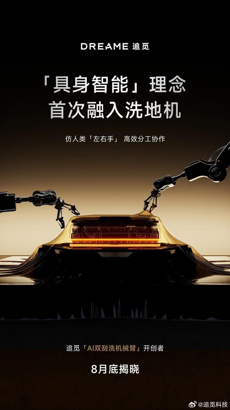 【追覓宣布其首款雙機械臂洗地機將于8月底發(fā)布】追覓科技宣布將于8月底發(fā)布其首款雙機械臂洗地機,并將具身智能理念引入家用清潔場景。新品搭載AI雙臂協(xié)同系統(tǒng),模擬人類“左右手”高效分工,顯著提升邊角觸達能力與頑漬清潔效率,實現(xiàn)結構主動性與清潔精度的雙重躍升。此次結構創(chuàng)新,延續(xù)了追覓在機械臂技術方向的長期深耕,也是繼首款單機械臂洗地機熱銷之后的又一次品類突破。追覓將持續(xù)推動家庭智能清潔邁入“多結構主動協(xié)同”時代。(廣角觀察)