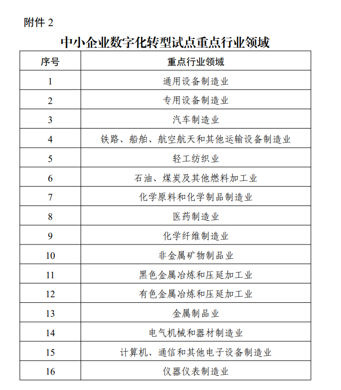?。ㄒ唬┚劢怪攸c行業(yè)。試點城市應(yīng)將制造業(yè)關(guān)鍵領(lǐng)域的中小企業(yè)作為數(shù)字化轉(zhuǎn)型試點的重點方向,可在重點行業(yè)領(lǐng)域(見附件2)中進一步確定具體細分行業(yè)開展試點,選取的細分行業(yè)應(yīng)符合國家區(qū)域戰(zhàn)略發(fā)展規(guī)劃和產(chǎn)業(yè)導(dǎo)向,體現(xiàn)自身產(chǎn)業(yè)基礎(chǔ)和特色優(yōu)勢,具有產(chǎn)值規(guī)模較大、中小企業(yè)集聚度較高的特征,避免分散。要結(jié)合不同行業(yè)特點,深入梳理行業(yè)共性改造需求,分業(yè)分級推進試點企業(yè)的數(shù)字化改造。